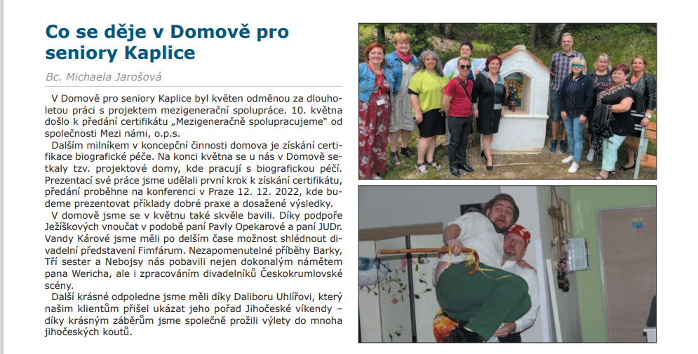 ŽIVOTNÍ PŘÍBĚHY POKRAČUJÍ I V DOMOVĚ PRO SENIORY
