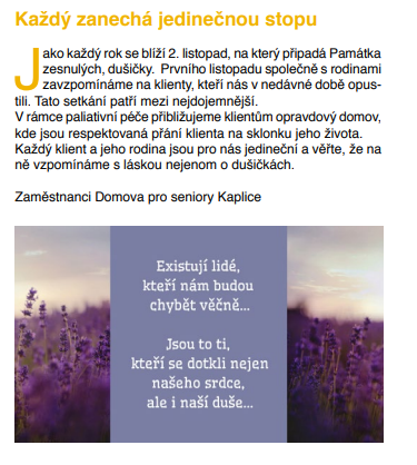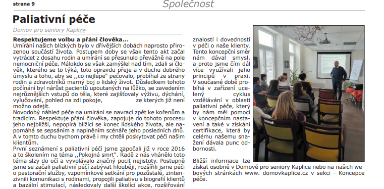 Velešínský zpravodaj - 7/8, Kaplický zpravodaj 7/2020 - Paliativní péče v Domově pro seniory
