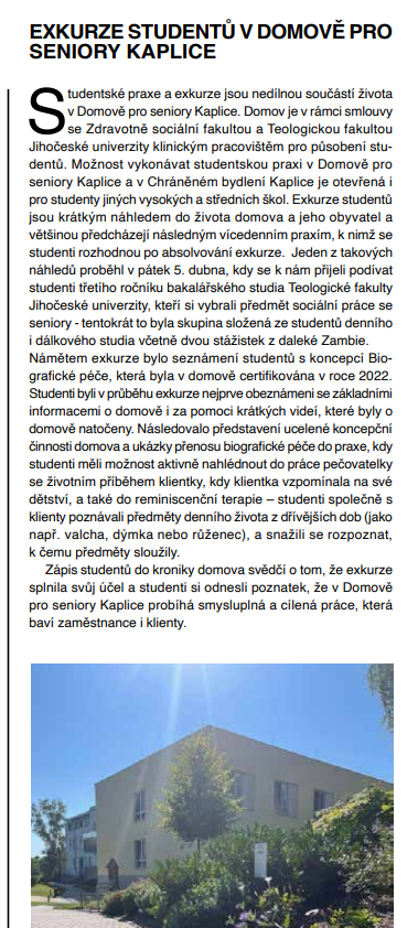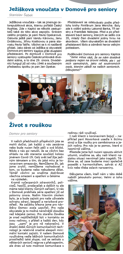 07/2023 - Kaplický /Velešínský zpravodaj - Dobrovolnictví v Domově pro seniory Kaplice