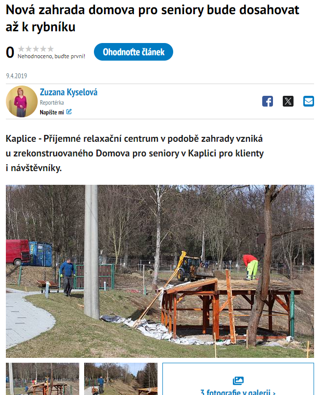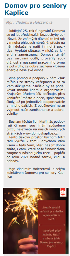 1. 1. 2023 - Českokrumlovský deník - Domov pro seniory v Kaplici otevře dům s chráněným bydlením