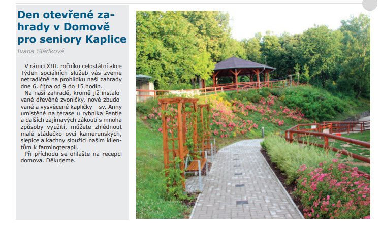 10/2021 - Kaplický/ Velešínský zpravodaj - Den otevřené zahrady v Domově pro seniory Kaplice
