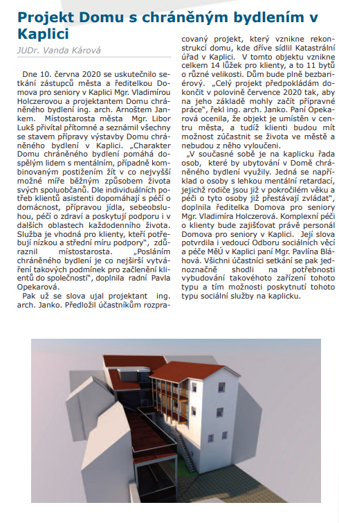 Kaplický zpravodaj - 7/2020 - Projekt Domu s chráněným bydlením v Kaplici