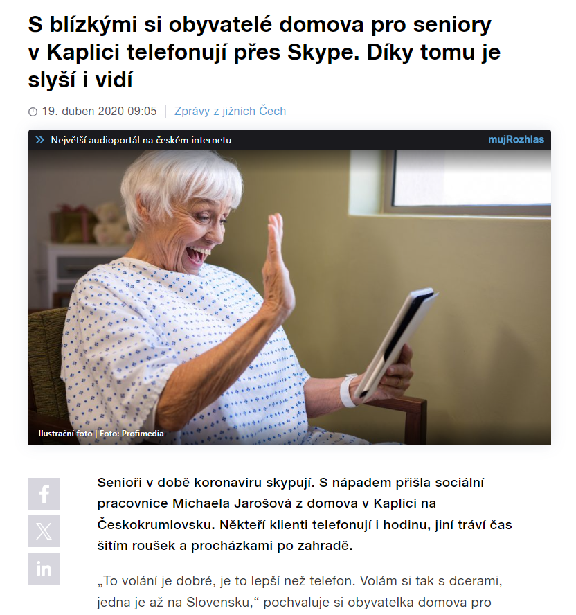 24.3 - Českokrumlovský deník - Se seniory se můžete vidět přes Skype
